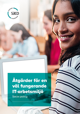 Allt fler akademiker utför alltmer av sina arbetsuppgifter med hjälp av digitala verktyg. Väl fungerande system som är anpassade efter arbetsuppgifterna och människorna är målbilden. Tyvärr ser det inte alltid ut så och faktorer i den digitala arbetsmiljön kan bidra till risker och ibland besvär. Det blir därför allt viktigare att få mer kunskap om området och förebygga denna typ av arbetsmiljöproblem. Det är dags för akademikerna att i högre grad uppmärksamma den digitala arbetsmiljön. Därför har Saco tagit fram en policy på området.