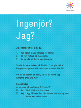 Det finns många olika ingenjörsutbildningar och massor av olika inriktningar. Om du har något slags intresse för teknik, är hysfad på matematik och beredd att kavla upp ärmarna är det troligt att ingenjörsyrket kan vara något för dig.